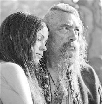 Джонатан Грин – беглый учитель, соблазнивший свою ученицу, хозяйскую дочку (Анна Чурина) и пустившийся наутёк от её разъярённого отца (Чарльз Дэнс), – история сама по себе тривиальная и бесперспективная, для её развития необходимо что-то типа уникального «Вия». Сначала Грин проезжает Трансильванию, но в землях графа Дракулы всё тихо-спокойно, никаких монстров-вурдалаков, благополучная еврозона. А вот за Карпатскими горами, где-то в лесах под Киевом, он попадает в гнетущую непролазную глушь дремучего леса, посреди которого стоит, сокрывшись от всего мира, хутор «Вия 3D», изменивший родному гоголевскому пейзажу: «Селение вместе с отлогостью скатывалось на равнину. Необозримые луга открывались на далёкое пространство; и целые ряды селений синели вдали, хотя расстояние их было более нежели на двадцать вёрст. С правой стороны этих лугов тянулись горы, и чуть заметною вдали полосою горел и темнел Днепр»… Здесь живёт весьма своеобразный народец, но подружиться с ним можно, потому что говорят они на одном языке (у нас фильм идёт на русском, и получается, что британец Грин и казаки общаются по-русски). В частности, рассказывают хуторяне Грину историю Хомы и Панночки, позвавшей в третью ночь на погибель философу многоглазого Вия...