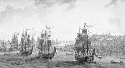 М.М. Иванов. Российская эскадра под командованием вице-адмирала Ушакова в Константинопольском проливе. Акварель, 1799 г.