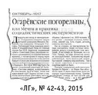 В номере 42–43 «ЛГ» я прочёл статью доктора исторических наук Ф. Селезнёва из Нижнего Новгорода «Огарёвские погорельцы, или Мечты и практика социалистических экспериментов».