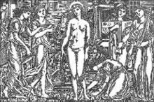 Графика прерафаэлитов, выставленная в Старом Английском Дворе, с одной стороны, принадлежит законсервированному фонду культуры – и в то же время напрямую отсылает к скандалам и эпатажам «современного искусства» полуторавековой давности. В середине XIX столетия группа британских художников фактически поставила под сомнение существовавшие изобразительные конвенции и предложила новые, ориентированные – как тогда декларировалось – на средневековые, доренессансные техники. Викторианский авангард оказался необычным кивком назад, отсылкой к уже существовавшим, «чистым», «настоящим» приёмам – ещё не испорченным мастерами Возрождения. На московской выставке графики прерафаэлитов из всего наследия можно познакомиться только с лаконичными гравюрами из книги «История Купидона и Психеи» (Эдвард Берн-Джонс и Уильям Моррис), в своё время так и не отпечатанными и заново найденными лишь в XX веке.