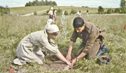 «Кинокомпания XXI век» выпустила два фильма Алёны Семёновой и Александра Смирнова – игровой «Рябиновый вальс» и документальный «Выпускной на минном поле». Они объединены одной темой и основаны на реальных событиях. Рассказ в них идёт о женских отрядах минёров, создававшихся на освобождённых от врага территориях. В одном только Вытегорском районе Вологодской области площадь минных полей превысила 140 квадратных километров. В 1944-м, когда фронт ушёл на Запад, была объявлена мобилизация молодёжи для очистки минных полей. За три летних сезона из израненной земли было извлечено более 112 тысяч мин и 7 тысяч не взорвавшихся снарядов. А выкапывали эту «начинку» шестнадцатилетние девочки, которых не имели права привлекать к таким работам просто по возрасту, но повестки вручались, и никто не мог отказаться. На «обучение» отводилось 72 часа, а потом – в поле: «Доучитесь там!» И эти девочки, дрожавшие от страха, плачущие от сознания собственной беспомощности, не говорили «не хочу, не могу»... Двухметровым щупом искали в дёрне твёрдый предмет – мину, снаряд, гранату. За два года сильно всё заросло, и сам «предмет» не так-то просто извлечь, да ещё и чека заржавела, не вынешь, а дёрнешь посильнее – взрыв. Кто-то из девочек в первые же дни поседел, а сейчас эти героини мирного тыла говорят: «Человек ко всему привыкает… Страшно было, конечно. Страшно! Вы этого не видели – и слава богу!» От 17-летней Жени Панфиловой ничего не осталось. Накануне ей приснился сон, будто пекла она лепёшку без муки. Девочки каждое утро друг другу сны свои рассказывали, чтобы понять, кто сегодня подорвётся. У Жени сон был вещим…