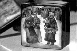Разные времена приносили что-то новое в сюжеты для росписи шкатулок: от немецких пасторальных картинок к эпизодам войны 1812 года до портретов, пейзажей, сцен народного быта... А 1960-е годы привнесли в федоскинские сюжеты мотивы из сказок Пушкина, Бажова и, разумеется, русских народных.
