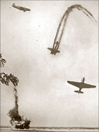 – Да. На перехват немецкой авиации были подняты дежурные звенья, но их атаки успешно отразили истребители сопровождения бомбардировщиков. И только в районах дислокации 10-й и 11-й смешанных авиадивизий, где в воздух были подняты значительные силы истребителей, разгорелись жаркие воздушные бои.