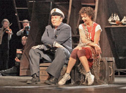 Вот и сейчас здесь показали музыкальный спектакль «Алые паруса». По мотивам одноимённой феерии Александра Грина пьесу сочинили Михаил Бартенев и Андрей Усачёв, а музыку написал Максим Дунаевский. Спектакль РАМТа, сам того, возможно, не ведая, невольно вступает в развернувшуюся в нашем обществе острую полемику вокруг показа по ТВ сериала «Школа». Смотришь «Алые паруса» и «Школу», сопоставляешь их и, как говорили в недавние времена, отмечаешь «два мира, две системы». В первом случае – сплошные надежды, во втором – полный мрак. Поди разберись, кому верить? Однако, судя по тому, как ведёт себя молодёжная аудитория, положение наше не столь уж безнадёжное. Желание преодолеть любую ситуацию даже тогда, когда она кажется абсолютно бесперспективной, когда силы явно неравны, но если ты не только веришь в свою мечту, но и готов за неё сражаться, можешь не сомневаться: тебя ожидает успех! Ведь ещё Гёте сказал: «Лишь тот достоин жизни и свободы, кто каждый день идёт за них на бой!»