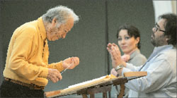 Без дирижёра даже буффонный Россини бывает скучен. Не выковыривать же из оперы отдельные арии, как изюм из булки. А всё дело в том, что композитор мыслил целостно. У него важны все составляющие – от сложнейшей колоратуры до тупейшей гримасы на лице певца и от «опрокинутости» ансамбля в верхний голос до какой-нибудь скандальной дуэтной сценки. Во всём этом Альберто Дзедда – как рыба в воде. Он всю жизнь изучал Россини, чьи оперы сейчас идут в театрах мира именно в редакции Дзедды. Но лучше один раз увидеть, как главный россиниевский маэстро, не глядя на солистов, в сложнейшем ансамблевом финале первого действия заставляет их тараторить «бум-бум», «тук-тук», «тик-так», «ля-ля» в совершенно запредельном темпе. Непонятно, как можно дышать, не говоря уже о слаженном комедиантстве семи певцов. Вокальный кастинг был действительно удачен.