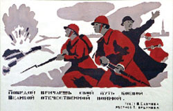 Советский политический плакат, выполнявший задачи пропаганды и агитации, начался в 1919 году со знаменитых «Окон сатиры РОСТА» и достиг пика политической остроты и высокого художественного уровня в период Великой Отечественной войны. Упрощённый символизм плаката времён Гражданской войны и интервенции стилистически напоминает о себе в блокадных листах лубочным просторечием, экспрессивным сатирическим духом и карикатурными персонажами. При этом появился и реалистичный образ человека. Формалистическая условность этого вида графики работает, скорее, с подсознанием зрителя, нежели с его интеллектом и чувствами, что является наиболее верным методом воздействия, когда чувства и нервы человека уже на пределе. В плакатной форме высока степень концентрации идеи, выраженной понятным художественным языком, что позволяет тематическому и семантическому разделам составить целостную картину и максимально действовать на зрителя. Наступление пехоты, авиации и танков комментируется отточенным «боевым» ритмом: «Прочтён приказ Наркома перед строем: Как бить врагов нещадным боем, Чтоб смерть принёс им год-герой, Великий год сорок второй» и «Самолёты в небе кружат, – Танки здорово «утюжат». Помимо сюжетов фронтовой тематики рисуются эпизоды, поднимающие дух в оцепленном городе, переключая внимание блокадников от переживаний на текущие бытовые дела, – жизнь продолжается. Смиренные женщины с вёдрами убирают мусор из ленинградских подворотен: «Скопление нечистот и грязи – Вот путь к болезням и заразе!», «Организованным трудом Очистим двор, квартиру, дом…», «Себя умело защитим: Дом каждый – в крепость превратим!». Работница за швейной машинкой с тулупом в руках: «Знай, полушубок, ладно сшитый, – Бойцу от холода защита…»