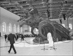 …И как только народный артист России Василий Лановой закончил чтение знаменитого гоголевского «Русь, куда ж несёшься ты? дай ответ...», как под торжественные звуки оркестра ниспало покрывало и взору зрителей, собравшихся в Манеже, предстала масштабная и столь созвучная словам классика композиция «Россия-Русь».
