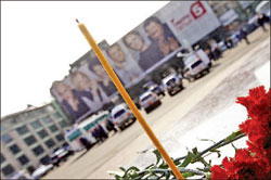 Как хотите, но не сказать об этом просто нельзя. Меня почему-то очень поразило одно странное совпадение (вполне мистического свойства), произошедшее на центральных улицах Москвы в дни трагедии и всеобщего траура. Когда появились первые репортажи о случившемся, то в уличные телекадры попали невероятно огромные по масштабам портреты, развешанные накануне на стенах зданий (и в метро!) в целях поднятия рейтингового внимания рекламируемых сотрудников «обновляемого» питерского 5 канала. Эти крупные планы умильно улыбающихся ведущих, от Ксении Собчак и Светланы Сорокиной до Дмитрия Быкова, казались чудовищным диссонансом всему происходящему. Каждый изображённый жестикулирует руками и радостным лицом показывает довольство оттого, что теперь допущен до куска «потеплевшего» ТВ-медийного пространства. Огромный Быков напротив Лубянки (что, видимо, должно было взаимно позабавить сотрудников спецслужб и фотоклон писателя) и у метро «Парк Культуры» виртуально аплодировал тому, на что смотрел в упор с большого плаката: задымлённому суточному коллапсу городской жизни. Конечно, всё это просто совпало, но как символически! Это поняли даже операторы новостей, снимавшие на Лубянской площади у входа в метро и стыдливо опускавшие объективы ближе к асфальту, лишь бы в очередной раз не черкнуть по ликам «будущего питерского телевещания». Конечно, Северная столица в очередной раз как смогла показала себя в Москве. Мощно, недёшево по деньгам, объёмно по площадям картинок, словом, в соответствии с имеющейся суммой на пиар. Первым такое в городе когда-то начал канал СТС, но авторство мегаплакатов можно отнести к эпохе вождей СССР, которые не гнушались выставлять свои не меньшие по масштабам портреты как раз в самом центре столицы. Кстати, спорили недавно о возможном появлении плакатов Сталина на улицах, а получили нечто иное. Однако мне казалось, что, даже невзирая на затраченные 5 каналом средства, имело бы смысл эти счастливые лица ведущих временно снять сразу после взрывов. Телеканал бы от этого не потерял, а только бы приобрёл. Траур есть траур. Однако «телелики» эпохи террора так и провисели над скоплением «скорых» и милицейских машин, над дымом и носилками, над плачем родственников и временной безлюдностью перекрытых московских площадей… Не знаю почему, но теперь смотреть на владельцев «хлопающих ладоней» и их жестикуляцию в эфирном вещании 5-го будет немного не по себе. Вот такая «подстава» получилась… Хотя времена проходят, многое забывается. Людям ведь свойственно успокаиваться.