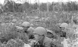В том бою, в котором было больше неразберихи и растерянности, чем осмысленного действия, стало быть, больше крови, наш батальон напоролся на финские пулемёты и, оставив в лесу убитых, отошёл на залысину каменистого холма. В окопчике под валуном, вырытом со стороны финнов (значит, до нас сидели они), куда забились смешавшиеся солдаты из разных взводов, был я единственный младший командир, и то без командирской должности. Где были остальные сержанты, взводный, я не знаю.