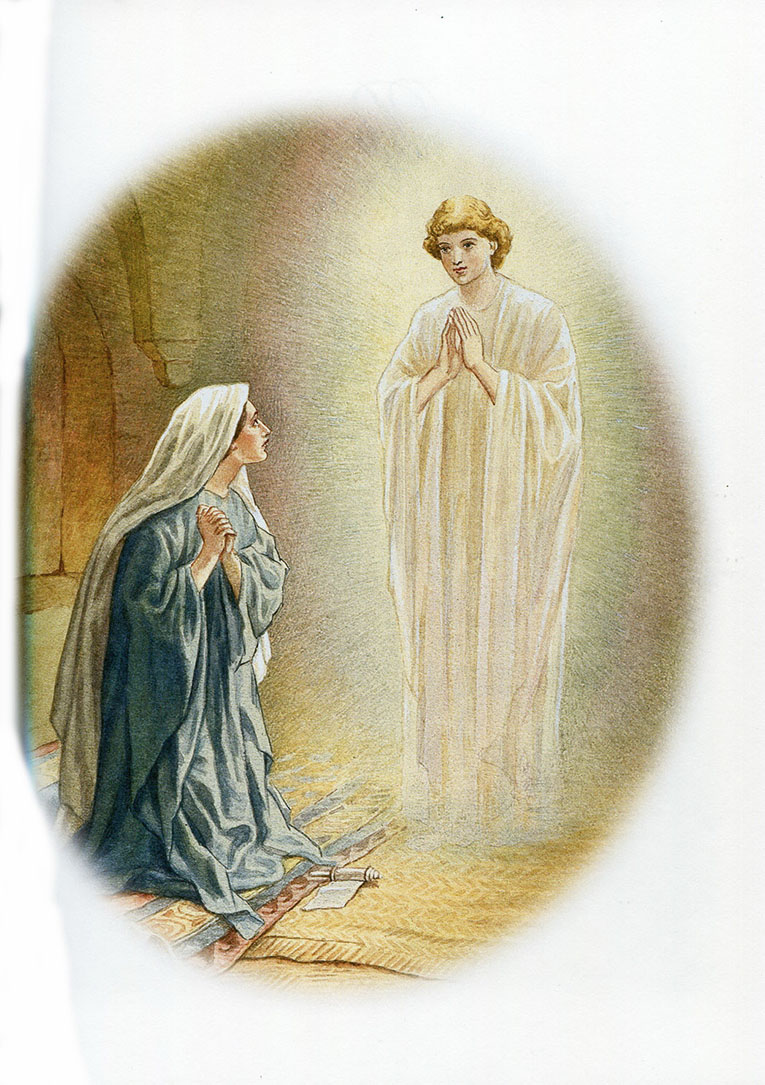 И вот в один весенний день Господь послал Ангела к Марии. Это был Архангел Гавриил. Войдя, он приветствовал Её словами: