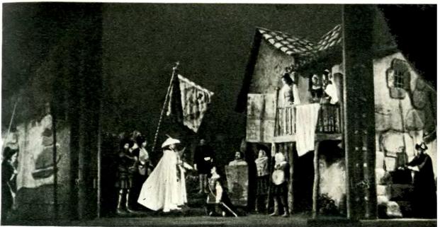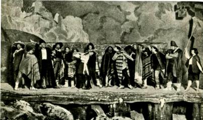 «Фуэнте Овехуна». Сцена из спектакля. Старинный театр. Петербург. 1911. Постановка Н. Евреинова, художник Н. Рерих.