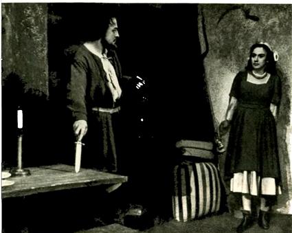 «Овечий источник» («Фуэнте Овехуна»). Лауренсья – В. Енютина, Менго – Д. Орлов. Театр Революции. Москва. 1938. Постановка О. Пыжовой и Б. Бибикова, художники В. Ходасевич и Б. Басов.