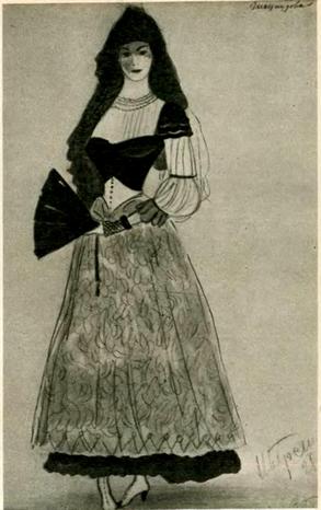 «Валенсианская вдова». Эскиз костюма Леонарды. Художник В. Козлинский.