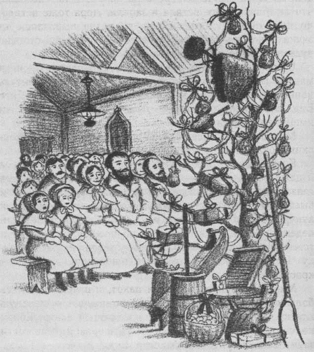 Рождественскую проповедь читал преподобный Олден, но Лора молча смотрела на дерево и не слышала, что он говорит. Все встали и запели. Лора тоже встала, но петь она не могла. Из ее горла не вырвалось ни звука. Ни в одной лавке на свете не увидишь столько чудесных вещей, сколько на этом дереве.