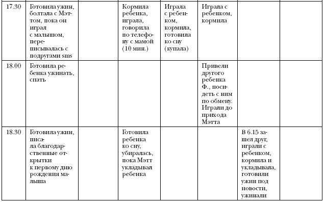 Изобретательность Джекки и ее супруга произвели на меня приятное впечатление. Они договорились с другой парой по очереди сидеть с детьми по пятницам и в результате получили возможность выходить из дома вдвоем раз в 2 недели, не тратясь на няньку. А поскольку малыши не требовали много внимания после 19.30, Уэрнз и ее супруг могли устраивать себе вечернее «домашнее свидание», когда наступала их очередь.