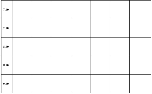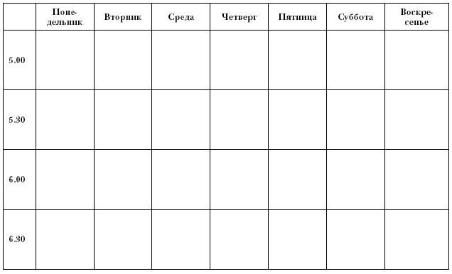 Вот таблица учета времени, которой вы можете воспользоваться. Подобную форму можно скачать по адресу: http://lauravanderkam. com/ books/168-hours/manage-your-time/.