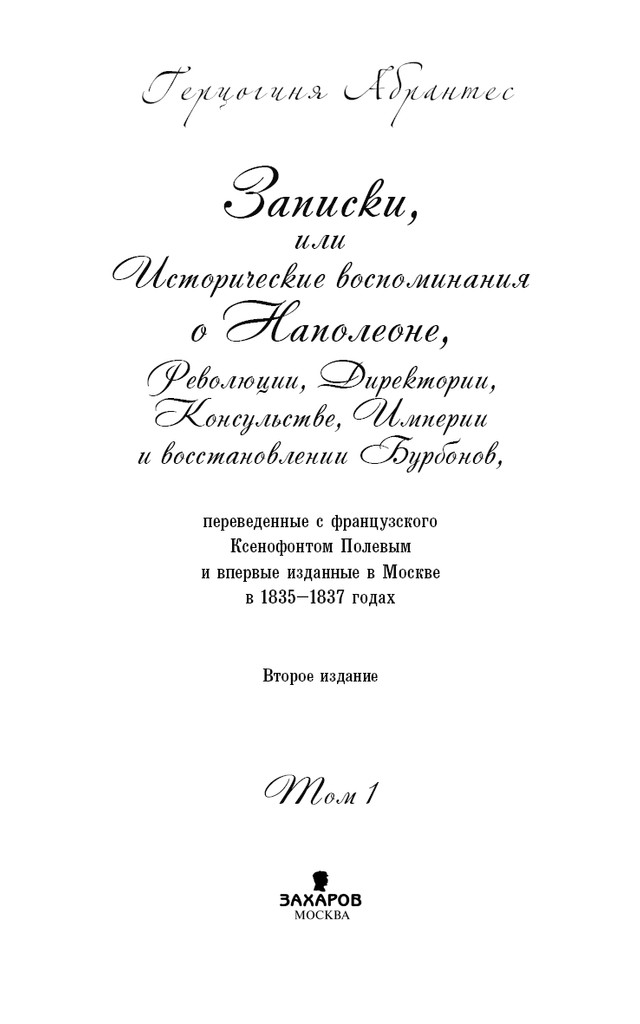 «Мемориал Святой Елены, или Воспоминания об императоре Наполеоне» выходил в издательстве «Захаров» в 2010 году. Далее в тексте он упоминается как «Дневник». – Прим. ред.