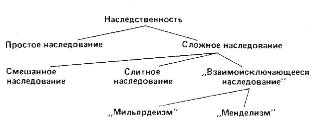 [Закрыть]. В случае «двойственной наследственности», когда родители не являются представителями родственных видов, признаки, на самом деле обнаруживаемые у потомства, будут зависеть, во-первых, от внешних условий, в которые оно помещено, а во-вторых, от тех уникальных свойств или качеств, которыми располагает данный организм. Взаимодействие условий внешней среды с этими уникальными свойствами и ведет к различным «типам» сложной наследственности: смешанной, слитной и «взаимоисключающейся».