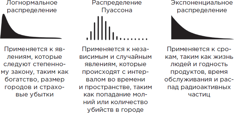 Существует много других распределений вероятности помимо нормального распределения, которые используются в различных обстоятельствах. Некоторые из них изображены выше.
