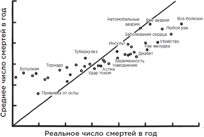 Сара Лихтенштейн и др. «Воспринимаемая частота летальных событий». Journal of Experimental Psychology 4, № 6 (ноябрь 1978 года).