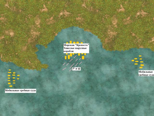 Осада на воде это что-то новенькое. Полагаю, пока корабли-сокровищницы будут играть роль бастиона, более мобильные группы галер постараются нанести урон нашим флангам. Скорее всего, попытаются таранить, ломать весла и поджигать.