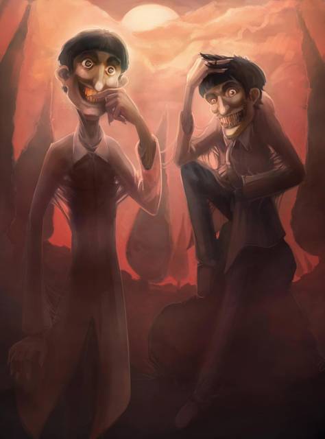 Чем дольше приглядывался к нему, тем больше нечеловеческого в облике замечал. Слишком длинные желтые зубы, чёрные провалы вместо зрачков, водолазка будто соткана из паутины, налипшей на костлявое тело.