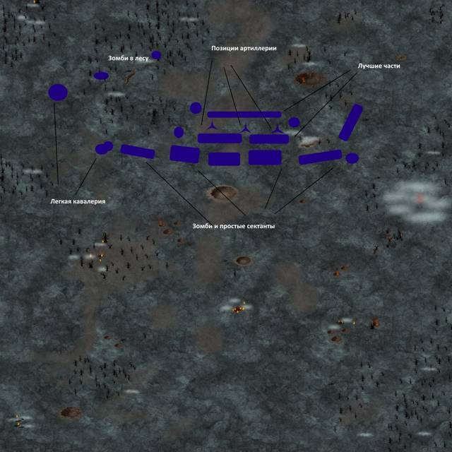 Новые кербрийцы пока не успели прийти нам на помощь, а враг явно приказал своим тварям давить любой ценой. Проломить наш центр, чтобы лишить войска устойчивости, а потом, постоянно подводя подкрепления многочисленных зомби, либо отбросить нас прочь с потерями, либо втянуть в невыгодные размены на жарком поле.