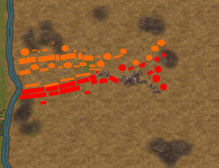 Река была здесь одним из немногих серьёзных препятствий для перемещения войск. В остальном округа представляла собой почти идеальную равнину. Попадались, конечно, сухие скалы, за столетия обтесанные песчаными бурями. Они добавляли рельефу некоторую минимальную сложность. Однако занять на них оборону не представлялось возможным. Все сегодня решится в прямом полевом столкновении двух великих сил.