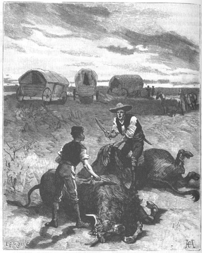 Весь следующий день выделывали шкуры и заготавливали мясо. Из арьергарда доставили повозки, на которые грузили приготовленные туши.