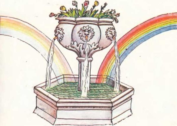 Дверь грота растворилась и молодые люди увидали громадный дворец волшебницы-Горбуньи. Дело в том, что ее нужно было называть Волшебницей-Царицей, если же ее называли Горбуньей, то она сердилась и делала горбатым всякого, кто осмеливался так ее называть.