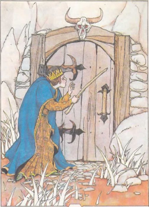 Долго шли они по прямой дороге и, наконец, пришли к гроту волшебницы-Горбуньи. Юноша постучал в запертую дверь.