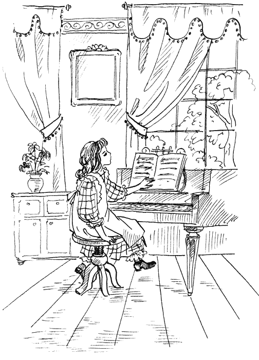 На другой день, дождавшись, когда мистеры Лоренсы ушли из дома, Бет отправилась заниматься. Правда, чувствовала она себя весьма стесненно. И только с третьего раза решилась войти в дом. Она прокралась на цыпочках в гостиную, где на трех массивных ногах стоял предмет ее вожделений. На пюпитре она увидела томик прелестных, но несложных фортепианных пьес. Все еще внимательно вслушиваясь, не раздадутся ли чьи-нибудь шаги, Бет подняла крышку и дрожащими пальцами коснулась несравненной клавиатуры. Взяв несколько аккордов, она забыла обо всем на свете и играла до тех пор, пока не увидела перед собой Ханну, которая пришла звать ее к обеду.