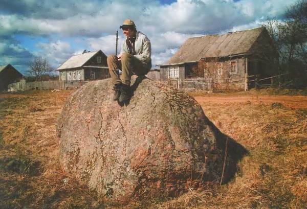 Наверное, этот юный следопыт думает, что нашёл метеорит, и сторожит его. Увы, это всего лишь каменный валун, который притащил с собой надвигающийся ледник десятки тысяч лет назад. Их у нас в России много