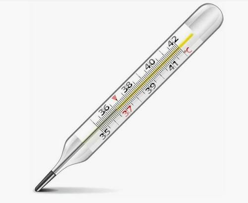 Вот он, старый добрый градусник. Настоящий, со столбиком жидкой ртути. Сейчас такой уже и не найти. Опасную ртуть в этом полезном устройстве теперь заменяют на менее ядовитый металлический сплав галлия с индием – он тоже жидкий при комнатной температуре