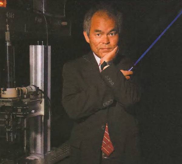 Профессор Сюдзи Накамура в 2006 году получил премию «Миллениум» (миллион евро) за создание синих и белых светодиодов. В руках он держит указку, работающую на синем светодиоде