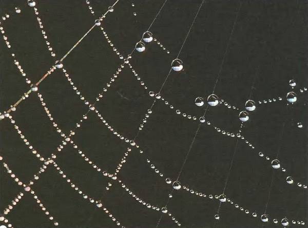 Вода, зацепившись за невидимую паутину, повисает на ней не кубиками и не пирамидками, а шариками. Это самая выгодная форма для воды, поскольку у сферы самая маленькая площадь поверхности среди всех мыслимых и немыслимых объемных тел. Стремление к минимализму – один из законов природы