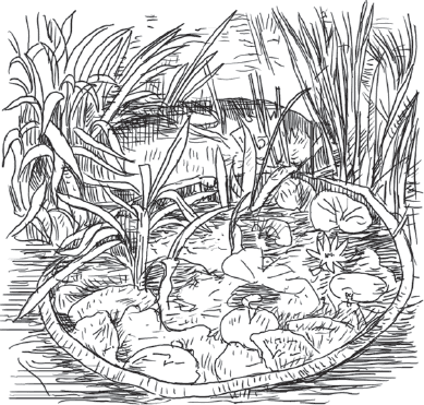 Подводные растения, высаженные в горшки или другие емкости, размещают в водоеме с учетом их биологических особенностей. По краю водоема можно разбить цветник или высадить прибрежные растения, которые придадут ему естественный вид.
