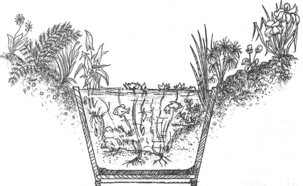 Для выращивания ценных водных растений на небольших придомовых участках, а также для содержания двух-трех аквариумных рыбок, маленькие водоемы можно соорудить из отрезков бетонных водосточных труб большого размера и неглубоких (0,5 м) деревянных бочек или их обрезков. Их закапывают в грунт вровень с землей или выше над землей на 5–7 см. Прилегающее к бочкам пространство декорируют камнями и низкорослыми цветущими и орнаментальными растениями.