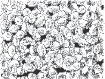 Настоящих корней у этого папоротника нет. Подводные листья «работают» за них: всасывают из воды питательные вещества. Верхние же, плавающие листья осуществляют фотосинтез. Они зеленого цвета, длиной 5–15 мм, сверху усеяны мелкими бородавочками, снизу – бурыми волосками. Папоротники, в том числе и сальвиния, – споровые растения. У них не бывает цветков, а следовательно, и плодов.
