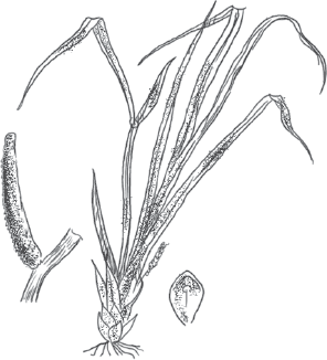 Цветки очень мелкие, однополые, в густых бурых колосовидных соцветиях (султанах), верхняя часть которых состоит из тычиночных цветков, нижняя – из пестичных. Околоцветника нет. Цветки окружены тонкими членистыми щетинками, принимаемыми некоторыми авторами за измененный околоцветник.