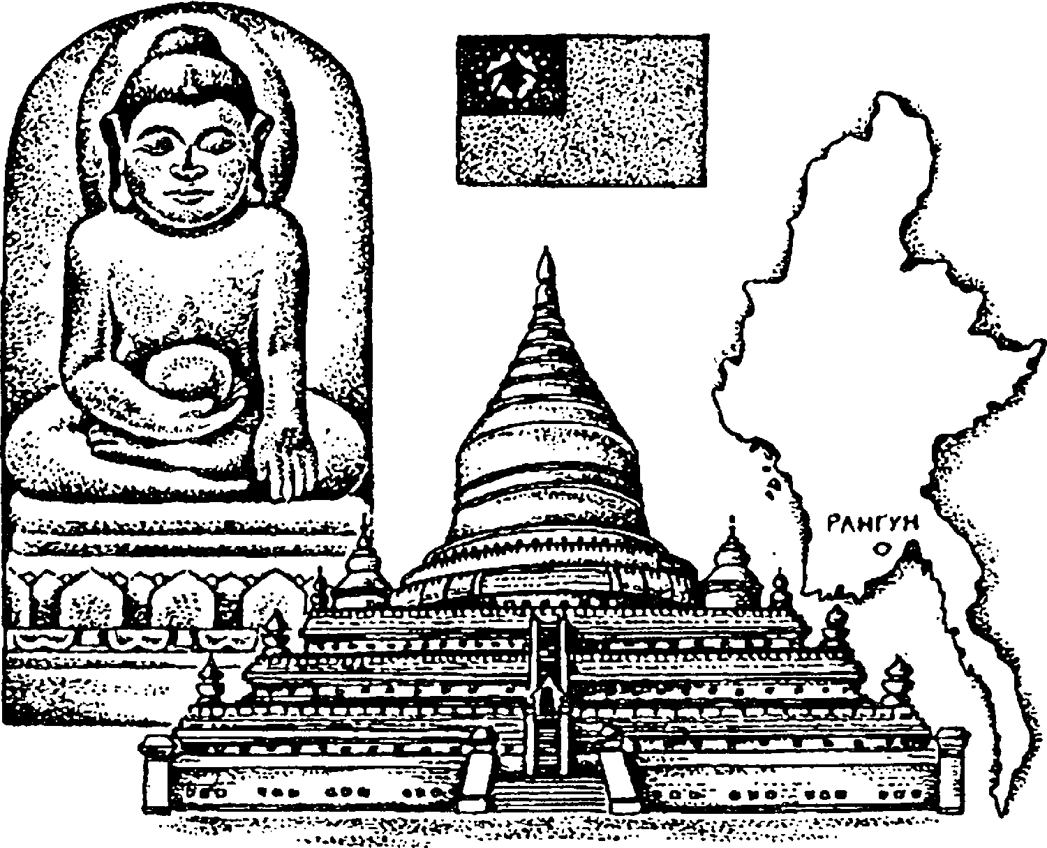 Столица современной Бирмы – город Рангун – выросла вокруг священной пагоды Шуэдагоун. Бурному росту города способствовало его удобное экономическое положение: город находится в дельте Иравади, и из рангунского порта удобно было вывозить рис и привозить товары из других стран мира.