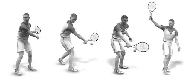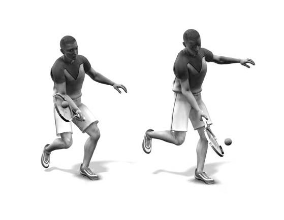 Это самые часто встречающиеся в игре удары, и готовиться к ним надо заранее, пока мяч летит на вашу половину, разворачивая тело вправо и готовя замах справа для отбивания мяча в поле соперника, стараясь создать ему максимум неудобств для ответного удара. Вы должны оказаться в полной готовности нанести удар раньше, чем мяч коснулся земли. Обычно первые два-три шага будут быстрыми, чтобы переместить тело в нужную точку как можно скорее, оценивая по особенности удара и траектории полета мяча его скорость, место падения и характер отскока. Чем раньше будет занята позиция для ответного удара, тем точнее и сильнее он будет, так как времени на обработку мяча у вас будет больше.