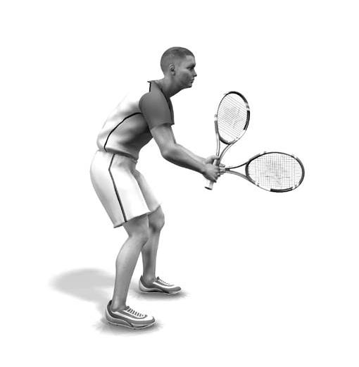 • Отвод плеч.Перед падением мяча на землю, когда теннисист уже находится в ударной позиции, он должен отвести одновременно плечи и ракетку немного назад. Это увеличит длину траектории движения ракетки перед ударом, и сам удар станет более плавным и мощным.