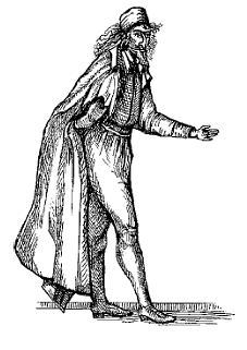 Первая группа – это народно-комедийные маски слуг. Они придавали комедии оптимизм, динамику действия, пафос и сатирическую силу. К ним относятся первый и второй Дзани (Бригелла и Арлекин) и служанка (Серветта). Именно эти слуги были душой комедии дель арте. Бригелла (рис. 18) – это наглый весельчак и выдумщик всяких интриг; Арлекин (рис. 19) – ребячливый, добродушный и нескладный человек; Серветта – энергичная служанка, но при этом разбитная и острая на язык девушка. Вторая группа – маски господ. В комедии дель арте постоянно критиковали и высмеивали глупого, жадного и влюбчивого купца из Венеции Панталоне (рис. 20), хвастуна и труса испанца Капитана (рис. 21), а также лжеученого, тупицу и болтуна Доктора. Все эти маски были подчеркнуто буффонные. Они постоянно оказывались жертвами хитрых проделок и уловок слуг. Такие действия показывали победу здравого смысла над человеческой неполноценностью аристократической верхушки. Третья группа – маски влюбленных. Эти маски определяли поэтическую сторону комедии дель арте. Составляя третью группу масок, актеры тем не менее самих масок на лицо не надевали. Но типовой характер этих персонажей делал их такими же масками, как и их комических партнеров. Влюбленные вносили в представление свежий поток ренессансного мироощущения. Борьба за любовь двух молодых людей являлась главным содержанием спектакля.