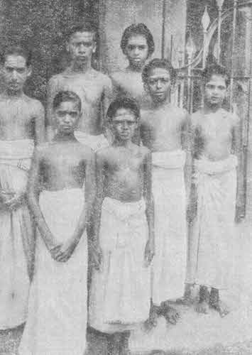 Несколько десятков мальчиков в одних только дхоти окружили нас. Они были выдержанны и вежливы, но в глазах их светилось нескрываемое детское любопытство.