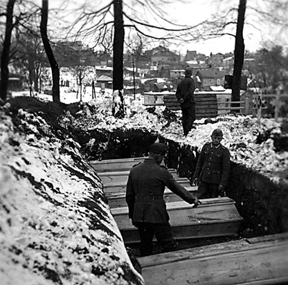 Немецкие солдаты размещают гробы погибших товарищей в могиле