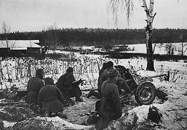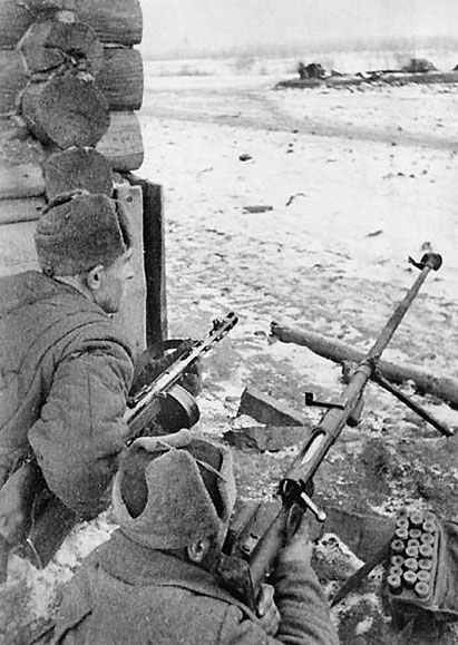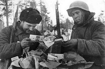 Морозы в Подмосковье усилились, идет снег. Советские войска получают теплое обмундирование – ватники, полушубки, валенки, сапоги, шапки-ушанки. На фронт с тыла приходят посылки с теплым бельем, варежками, носками.