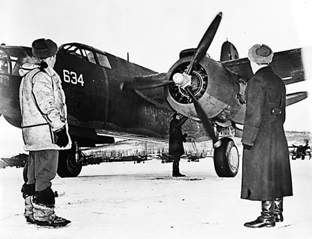 Советские летчики принимают американский средний бомбардировщик «Дуглас А-20»