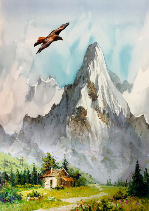 На высокой-высокой белой горе жил очень большой и сильный орел. Гора была ослепительно белой и горела так ярко, что ему приходилось иногда щуриться, чтобы разглядеть ее.