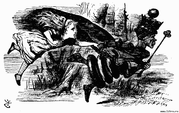 Позже, когда Алиса размышляла об этом дне, она никак не могла понять, как это случилось; она только помнила, что они бежали, крепко взявшись за руки, и Королева так неслась вперед, что Алиса едва за ней поспевала, но Королева все время только кричала: